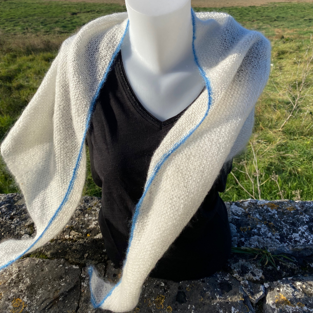 Offrez-vous un cocon de douceur avec ce châle tricoté à la main dans mon atelier Havre de Laine, au cœur du Havre de Regnéville en Normandie. Réalisé en mohair de grande qualité (80 % kid mohair, 20 % soie), il se distingue par sa légèreté, sa chaleur et son toucher aérien.